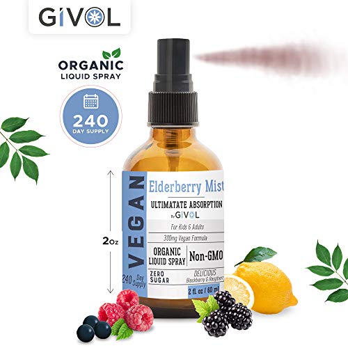 Givol Part#: 037203866027 037203866027 - GIVOL (by Logic Remedy) Organic Elderberry Mist-Sambucus Nigra (Extra Strength) Liquid Extract for Kids & Adults - Immune Boost - High Flavonoid Levels - Vegan- Easy Absorption - Non-GMO - 2 oz