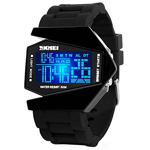 Gosasa Men Sports Military Watches Digital Airplane Shaped LED Colorful Light Watches (Black) (Black)