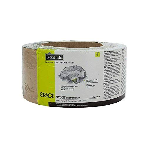 Even with today's treated and high-tech decking products--which look great and last and last--preventing joist rot and decay, as a result of water accumulation under the decking boards, remains a major problem. Grace Vycor Deck Protector® is a unique solution to significantly extend the useful life of decks. Grace Vycor Deck Protector significantly extends the useful life of decks. It features a unique adhesive & membrane composition for providing Corrosion protection, prevents water infiltration at deck fasteners, skid resistant coating for easier foot traffic during installation, compatible with all decking materials, and between the connector & the pressure treated wood & acts as a barrier layer to break the electric circuit & helps reduce corrosion, shrink wrapped rollsFeatures: