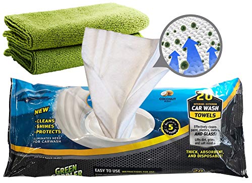 Green Gobbler GGCSAT20 Waterless Car Wash Towels + 2 Microfiber Cloths