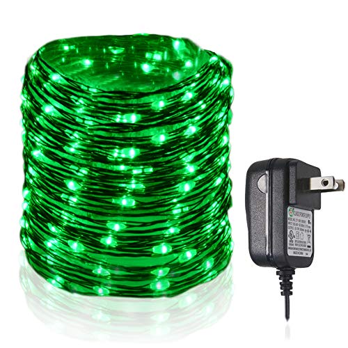 HAHOME Waterproof Led String Lights,33Ft 100 LEDs Indoor and Outdoor Starry Lights with Power Supply for Christmas Wedding and Party Decoration,Green