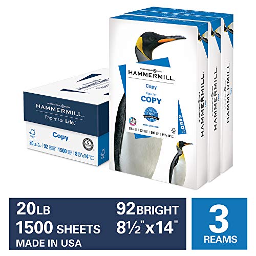 Hammermill Paper, Copy Paper Poly Wrap, 8.5x14 Paper, Legal Size, 20lb Paper, 92 Bright, 3 Ream Case / 1,500 Sheets (150800C) Acid Free Paper