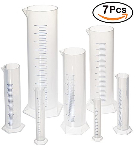 - Set of 7 polypropylene graduated measuring cylinders