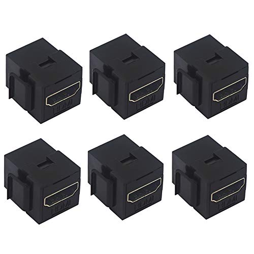 HDMI Female Keystone Coupler, VCE 6-Pack HDMI Keystone Jack Insert Gold Plated 3D&4K Mini Adapter Connector for Wall Plate-Black