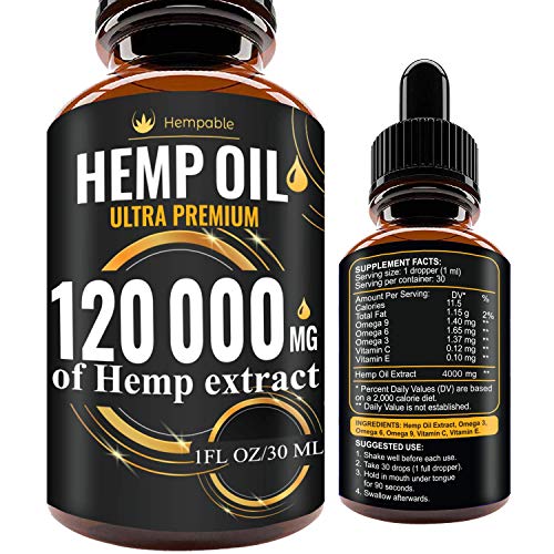 Hempable Part#: H40000 689774731183 - Hemp Oil Drops 120 000 mg, Co2 Extracted, Made in USA, Help Reduce Stress, Anxiety and Pain, 100% Natural Ingredients, Vegan Friendly, GMO Free