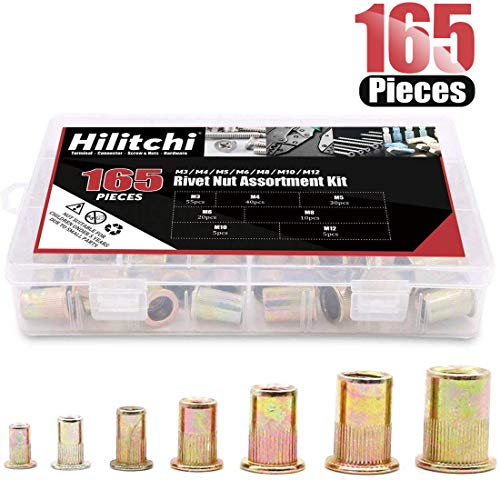 - 🔺【COMPLETE SIZES AND MODELS】Package Quantity: 165pcs nutsert metric rivnut assortment. We contains various and complete models for your riveting needs. With strong metallic luster and precise thread, surface. Rivnuts Size: M3 / 4 / M5 / M6 / M8 / M10 / M12.