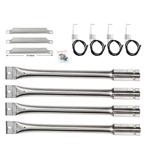 Hisencn Gas Grill Repair Kit Stainless Steel Pipe Burners, Crossover Tubes, Igniter Electorde Replacement For Charbroil 4 Burner 463248108, 463260207, 463260707, 463261107 Grills, G413-5000-01, 15 7/8