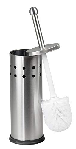 Home Basics Stainless steel toilet brush decoratively stores brush in a modern fashion to prevent leaking and keep floors clean and dry, as well as an simple way to clean and store . Measures At 4-in x 4-in x 14.5-in.Features:
