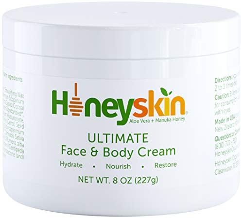 Face and Body Moisturizer Cream - Organic Aloe Vera and Manuka Honey for Rosacea Eczema Psoriasis Rashes Itchiness Redness - Natural Organic Cracked Skin Relief - Anti Aging - Anti Wrinkle (8 oz)