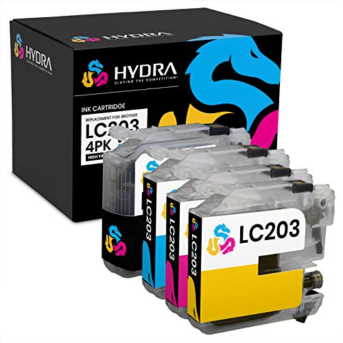 Hydra Compatible Ink Cartridge Replacement for Brother LC203 High Yield (1 Black, 1 Cyan, 1 Magenta, 1 Yellow, 4-Pack) for MFC-J460DW, MFC-J480DW, MFC-J485DW, MFC-J680DW, MFC-J880DW, MFC-J885DW