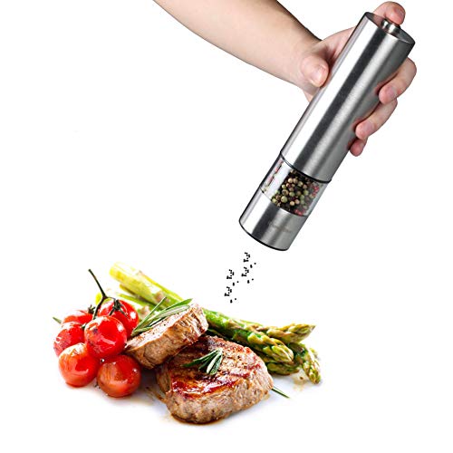 iBunnyShop Electric Salt and Pepper Grinder (Single Mill), Automatic Battery Operated Shaker with Light