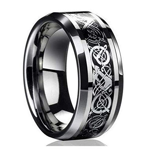 Rings Part#: 5g3k88 - ERAWAN New Silver Celtic Dragon Titanium Stainless Steel Men's Wedding Band Rings EW sakcharn (Size 8)