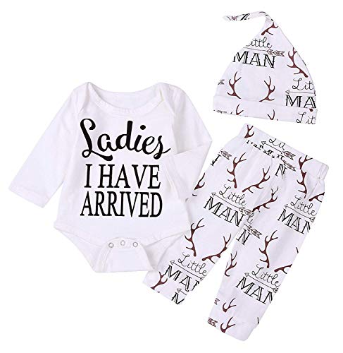 Imsmart Newborn Suit for Baby Shower Deer Print Long Sleeve Romper+Long Pants+Hat
