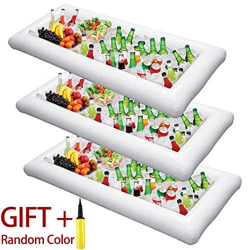 - Package includes 3pcs inflatable serving bars and a random color inflator pump(gift). Fill the inflatable serving bar with ice to keep food and drinks deliciously chilled for hours--indoors or out .Lightweight,portable and waterproof.