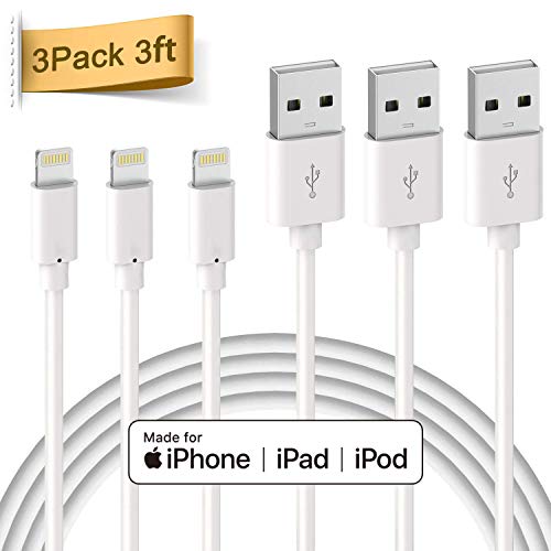 iPhone Charger, Quntis Lightning Cable 3 Pack 3ft Lightning to USB Cable Cord Certified Compatible with iPhone 11 Xs Max XR X 8 Plus 7 Plus 6 Plus 5s SE iPad Pro iPod Airpods and More - White