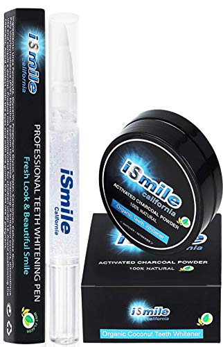 - ✔️ iSmile California 2-in-1 PROFESSIONAL STRENGTH TEETH WHITENING Kit includes a teeth whitening pen containing 35% Carbamide Peroxide, an FDA approved formula, to effectively and quickly remove years of stains (due to coffee, tea, wine, smoking, soda), as well as an Organic Coconut Charcoal Powder to Enhance the effect of the teeth whitening pen and Protect your new Bright Smile!