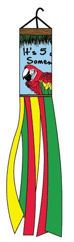 It's 5 O'Clock Somewhere Windsocks 60" is made of heavy duty polyester that measures 60 inches in length. We are offering FREE SHIPPING for a limited time! Get the windsock that reminds you that it's literally is 5 O'clock Somewhere.Features: