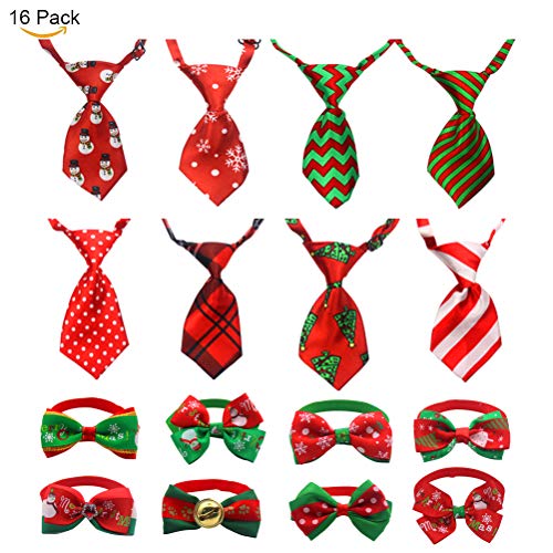 Jiatecco Part#: JIA80102-S1 681013958207 - JIATECCO Christmas Dog Ties 16 Pack - Adjustable Small Pet Bow Tie Neckties for Puppy Cat Festival Collar Accessories