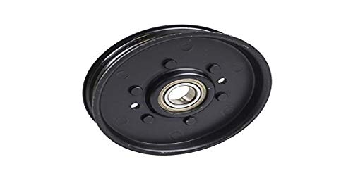 John Deere Flat Idler Pulley Flat idler pulley for many John Deere mower decks. Designed to contact the flat side of belt. Measurements:4.090-inch effective diameter0.669-inch bore0.825-inch groove width0.965-inch overall widthSteelReplaces AM107468