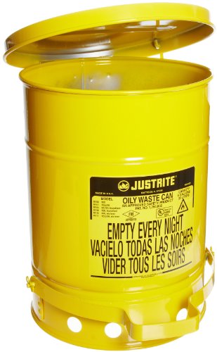 Justrite 09101 6 Gallon, 11.875" OD x 15.875" H Galvanized-Steel Yellow Safety Cans for Oily Waste