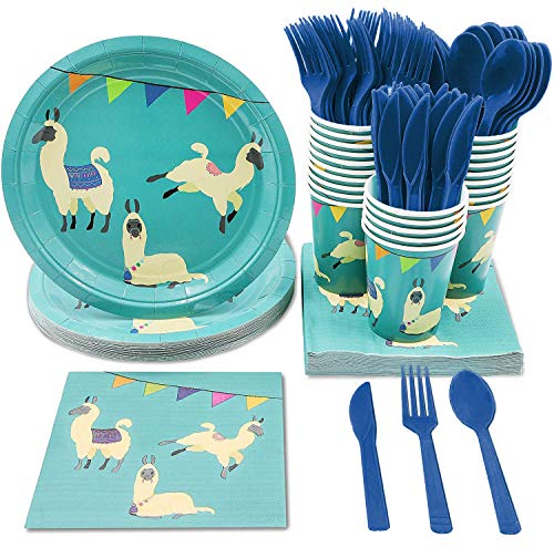 Blue Panda Part#: LLAMAPP 819132029359 - Juvale Llama Party Supplies - Serves 24 - Includes Plates, Knives, Spoons, Forks, Cups and Napkins. Perfect Llama Birthday Party Pack for Kids Llama Animal Themed Parties.