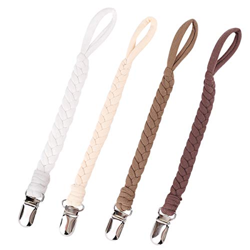 KAPIHOUSE Pacifier Clips for Boys and Girls, Baby Holder Leash, Teething Toy or Soothie by Hand-Made Braided (4 Pack Color A)