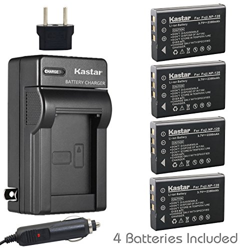 Kastar 4X Battery + Charger for Fujifilm NP-120 FinePix 603, F10, F11, KYOCERA Contax Tvs Digital, RICOH Caplio 300G, Caplio 400G Wide, Caplio Pro G3, Caplio R330, Caplio RR10, Caplio RR30 Caplio RX