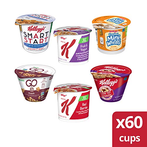Kellogg's Cereal in a Cup Variety Pack - Nutritional Charge Bundle, 6 Flavors, Portable Breakfast, Bulk Size (Pack of 60 Cups)