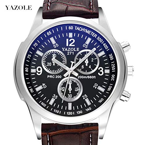 KIOP Men's Luxury Fashion Faux Leather Mens Blue Ray Glass Quartz Analog Watches