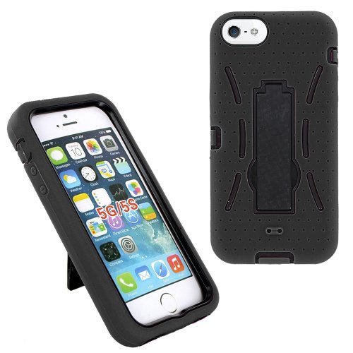 Specifically designed for the Apple Iphone 5 .Light weight so it won't add unnecessary bulk to your device Holds the device securely in place, while providing maximum protection and still allowing the user to access all the buttons, ports, and screen The case provides 2 layers of protection The case itself is made out of a hard durable plastic shell. Silicone rubber gel wraps around the plastic case giving it extra protection. Build in Kickstand for typing and watching movie in a horizontal or vertical layout APPLE© is a registered trademark. This is not a product by APPLE nor does APPLE endorse the use of any of these products. We are not affiliated, associated, authorized, endorsed by, or in any way officially connected with APPLE© or any of its subsidiaries or its affiliates.Features: