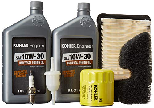 - Includes: Fuel Filter (25 050 21-S) Air Filter (20 083 06-S), Oil Filter (52 050 02-S), Spark Plug (25 132 23-S) and two quarts of 10W30 Kohler Oil