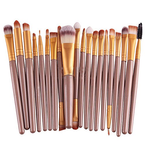 Kolight20 Pcs Pro Makeup Set Powder Foundation Eyeshadow Eyeliner Lip Cosmetic Brushes (Brown+Gold)