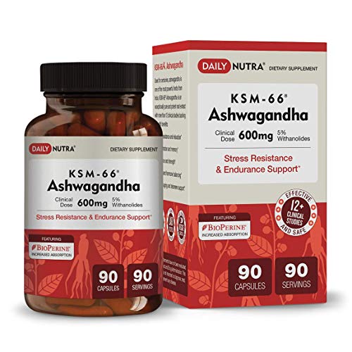 HIGH CONCENTRATION EXTRACT: KSM-66 Ashwagandha is extracted using a patented method that ensures all the active constituents of the plant are maintained. This makes DailyNutra's Ashwagandha one of the most effective forms of Ashwagandha on the market. This full-spectrum root extract contains 5% Withanolides, the highest concentration of root-only Ashwagandha extract available, providing at least 30mg withanolides per serving.PROVIDES SAFE AND NATURAL STRESS RELIEF: Ashwagandha is an adaptogenic herb that is clinically shown in human studies to support healthy stress levels by reducing the stress hormone cortisol. This calming supplement, which is also demonstrated to support thyroid and hormone balancing, is safe and has no side effects. Each capsule contains a 600mg clinical dose of KSM-66 Ashwagandha.