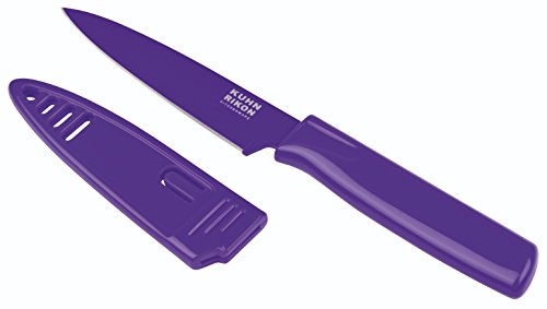 Kuhn Rikon Part#: 2819 705475028190 - Kuhn Rikon COLORI Non-Stick Paring Knife with Safety Sheath, 19.5 cm/7.77 inch, Purple, Straight Blade