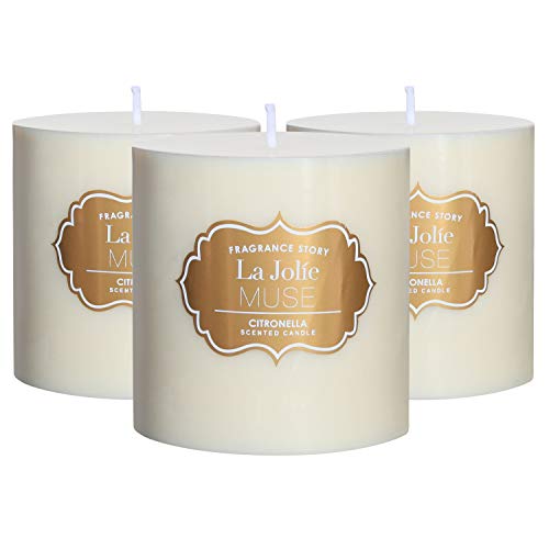 La Jolie Muse Part#: 8541841998 - LA JOLIE MUSE Citronella Candles, Pack 3 Pillar Candle, Scented Natural Wax, 23 oz 70 Hours Burn Each, Outdoor and Indoor, White