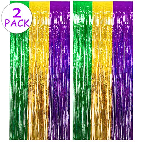- DESIGN FOR MARDI GRAS - These metallic foil fringe curtains are in bright and vibrant colors. They composed of purple, green and gold colors which can create dreamy and enthusiastic atmosphere for your parties.