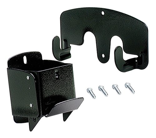 Crawford by Lehigh wheelbarrow holder saves space and stores wheelbarrow against wall in garage or shed. Easy to use, no heavy lifting or bending is required. Fits most wheelbarrows including heavy duty contractor types. Made of heavy gauge solid steel. Comes with a spring loaded lift latch for safety which prevents accidental release. Easy to install, hardware included. Available in black color. Comes in blister card.Features: