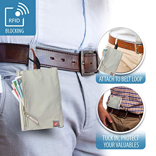 Lewis N. Clark RFID Blocking Money Belt Travel Pouch + Credit Card, ID, Passport Holder for Women & Men, Tan