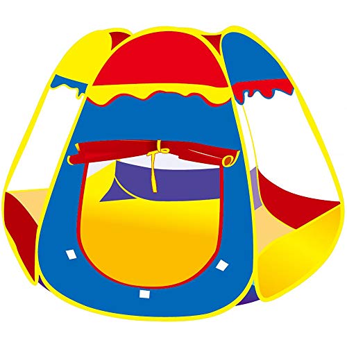 Collapsible Rainbow Fun Play Tent Hexagon ShapedFashion and mesh windows provide ventilation and easy viewing for supervision. Polyester non-woven fabric material is durable, strong and easy to clean. Funny Play Tent sets up instantly and, when fully folded again, stores in a small zipper carrying bag. Awesome as a ball pit (balls NOT included)! Open Tent Size: 44'×44"x39''