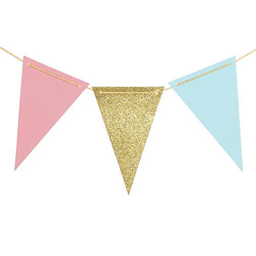 Ling's moment Paper Pennant Banner Triangle GarlandGlitter Gold Pink Blue Flag Banner for Gender Reveal, Wedding, Baby Nursery, Bridal Shower, Birthday, Event & Party Supplies, 15pcs