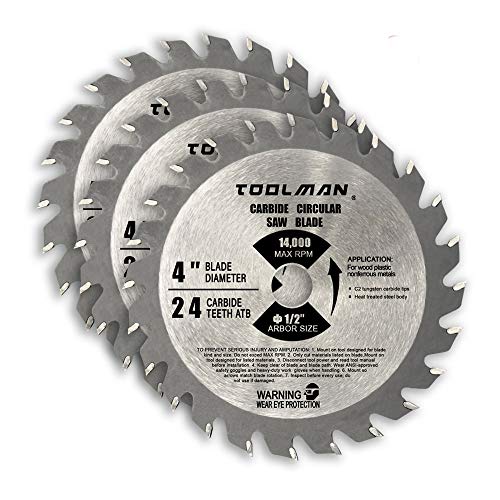 Toolman Part#: 826656001747 - Lion Tools S010101 Toolman Premium Multifunctional Carbide-Tipped Circular Saw Blade Universal Fit 4" 24T 3pcs Table For Wood and Plastic cutting works with DeWalt Makita Ryobi
