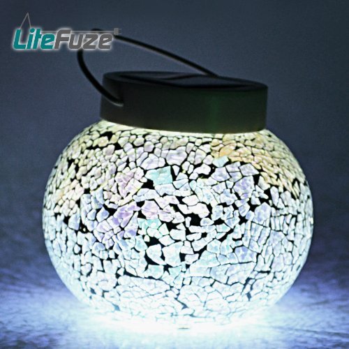 Litefuze Part#: B004TC4KDS 045635388192 - LiteFuze Mosaic Glass Rechargeable Solar Lamp Outdoor Garden Light - White
