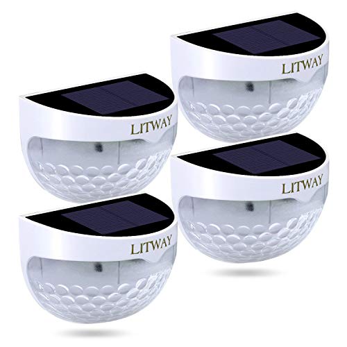 LITWAY Solar Lights Outdoor Solar Fence Lights Wall Mount Wireless Decorative Deck Lighting White, 4 Pack