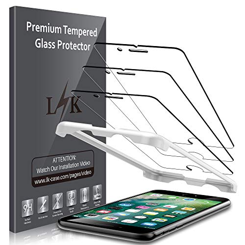 LK (3 Pack) Screen Protector for iPhone 7 Plus/iPhone 8 Plus 5.5 inch Tempered Glass Film (Easy Installation Tray) Case Friendly, 9H Hardness HD Clear, Bubble Free