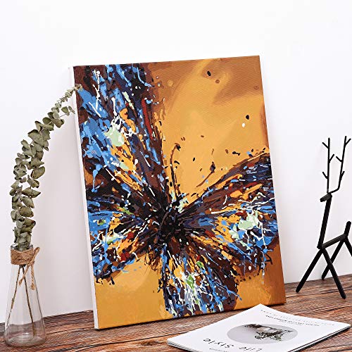 MADE4U [Impressionism Series 2] [20"] [Thicker (1")] [Wood Framed] Paint by Numbers Kit with Brushes and Paints (The Blue Butterfly HHGZGX8217)
