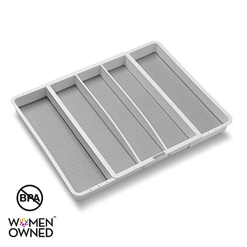 madesmart Expandable Utensil Tray-White | Classic Collection | 5-Compartments | Kitchen Organizer | Soft-Grip Lining and Non-Slip Rubber Feet | Easy to Clean | BPA-Free