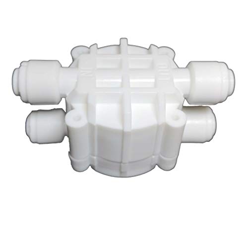 QC fittings Automatic Shut-Off Valve Quick-Connect Fittings RO Reverse Osmosis Automatic Shut-off Valve with Quick Connection. This a replacement part for a standard Reverse Osmosis (RO) System. All tube connections are 1/4" with "in" and "out" labeled on the top. This valve shuts off the feed water going into an RO System when the pressure on the tank side reaches 2/3 that of the feed pressure.Features: