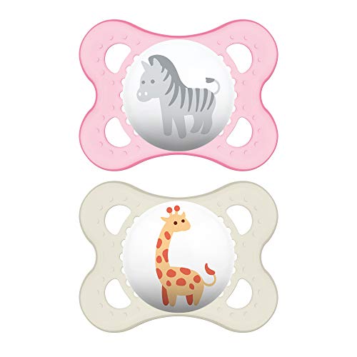 - PRODUCT DETAILS - MAM Animal Collection Pacifiers (2 pack), MAM Pacifier 0-6 Months, Baby Girl Pacifiers, Includes 1 Sterilizing Pacifier Holder Case