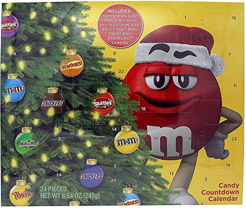Assorted Candy Christmas Countdown Calendar - Candy Includes M&M's, Snickers Minis, Skittles, MilkyWay Minis, Twix Minis, and Starburst - Assorted Candies - 8.64 oz - Great Christmas Countdown Activity for Kids and AdultsFeatures: