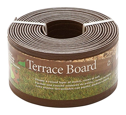Terrace board provides a textured, wood grained look to edging. Blocks spreading of grass while making a neat border. Creates a raised layer of mulch, rocks, or soil. Stakes are needed for proper installation, not included. The product is Manufactured in United States.Features: